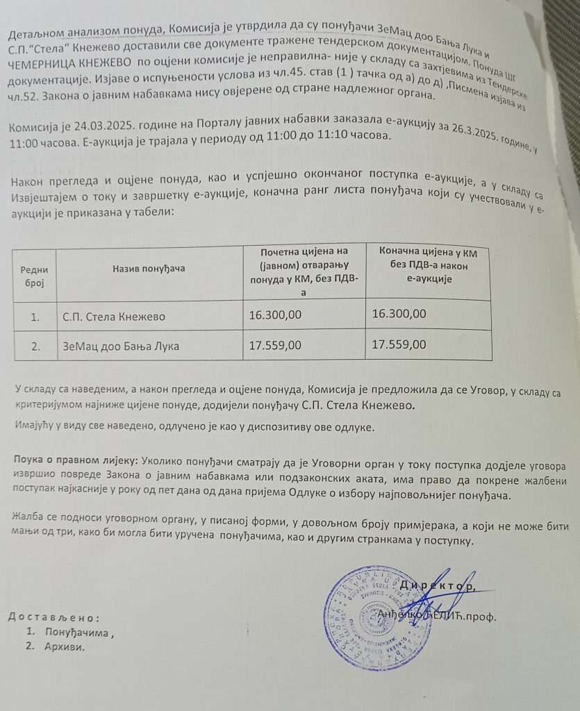 Одлука о избору најповољнијег понуђача за набавку дрва за огре